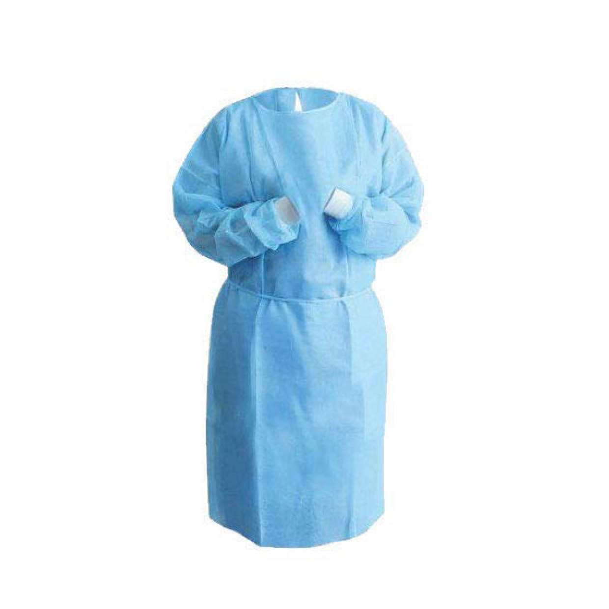 - Blue, Disposable and non-sterile long sleeve hospital gown with oxford nylon tie-up on the neckline.
