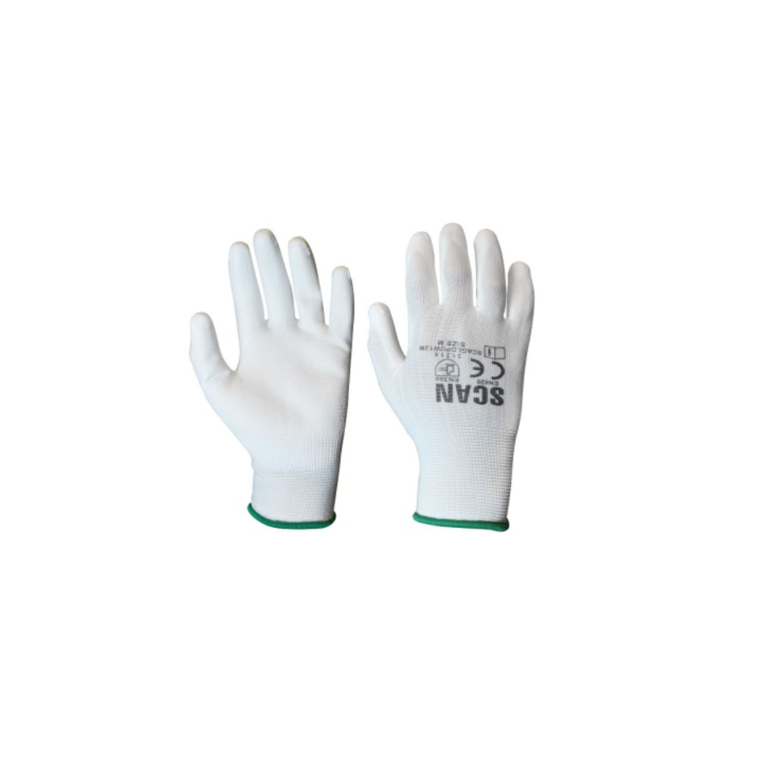 - White PU palm coated glove Size 10